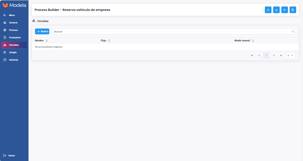 Los circuitos son un conjunto de roles que sirven para definir la secuencia de personas que aprobarán en una actividad de Aprobación modelada en el proceso. Los circuitos te permiten múltiples configuraciones, de tal manera que puedas modelar exactamente la aprobación como necesitas.