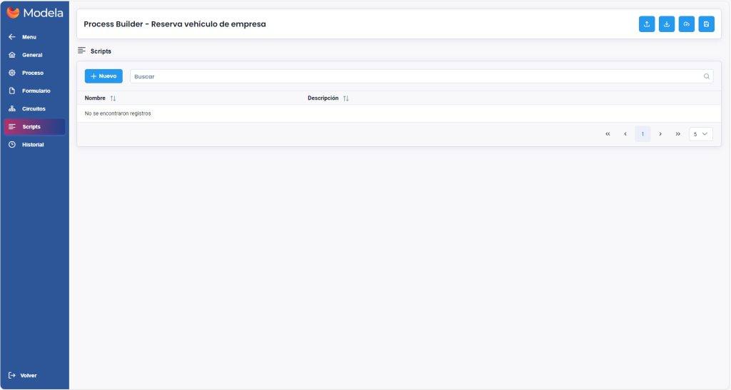 Todos los Scripts que se usen en tu proceso deben de darse de alta en esta pestaña (los podrás usar las veces que quieras dentro del mismo).