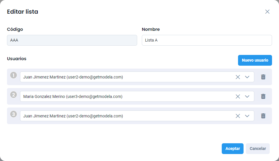 Desque aquí podremos configurar todas las listas de usuarios de nuestros procesos. Esta configuración es muy importante para que los procesos funcionen correctamente y las actividades se asignen a las personas correctas.